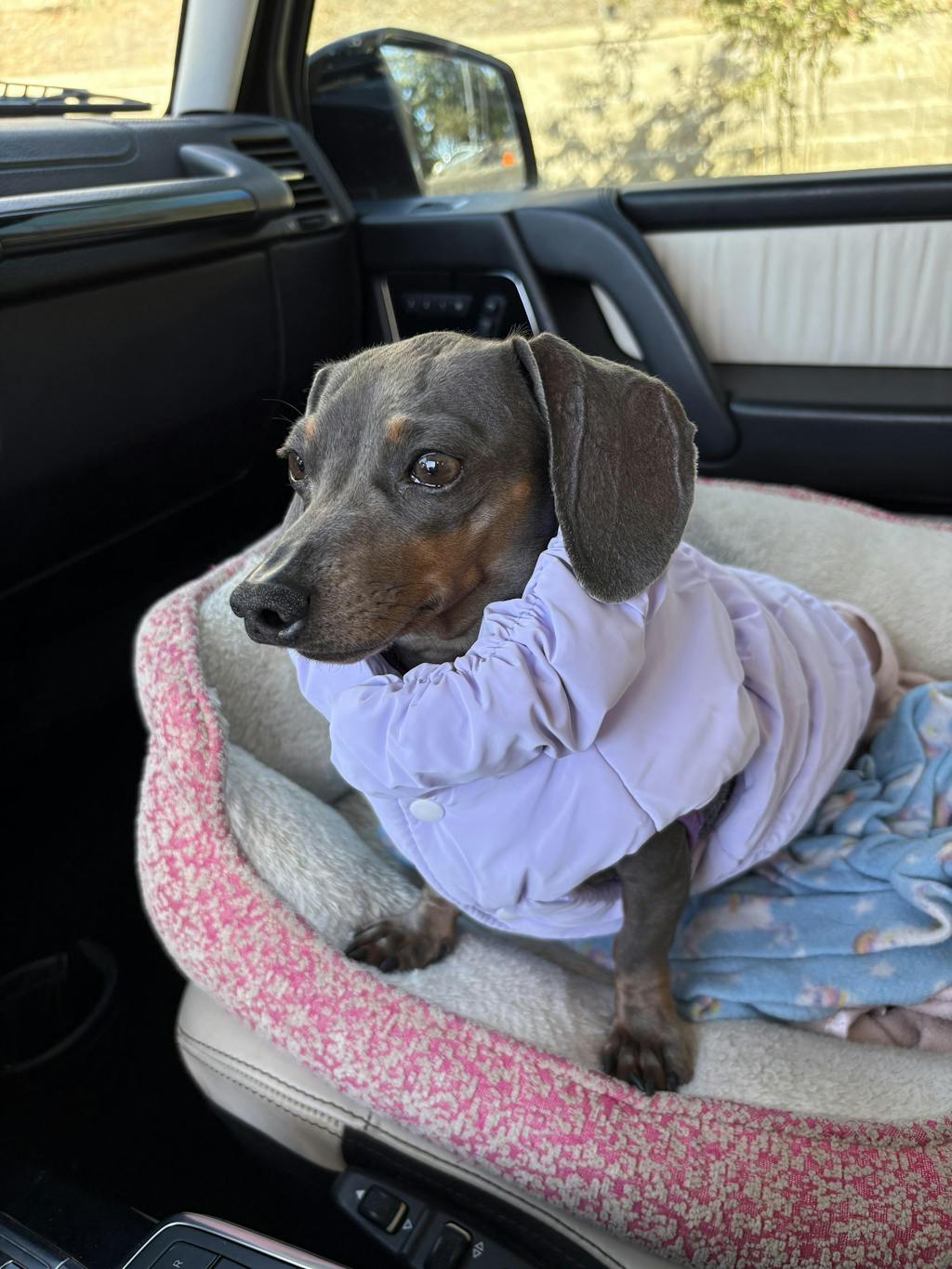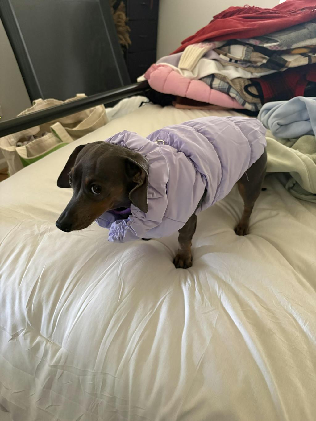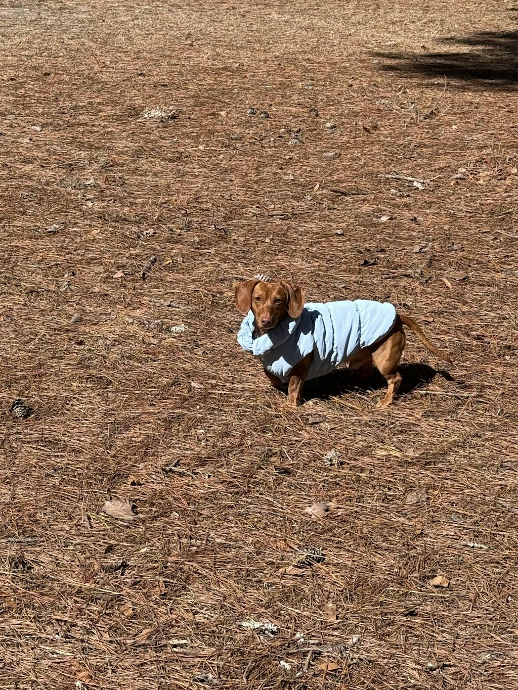 Dachshunds have long backs, short legs, and stay closer to the cold ground than most dogs. Our puffer focuses warmth where dachshunds need it most, without getting in the way during walks.